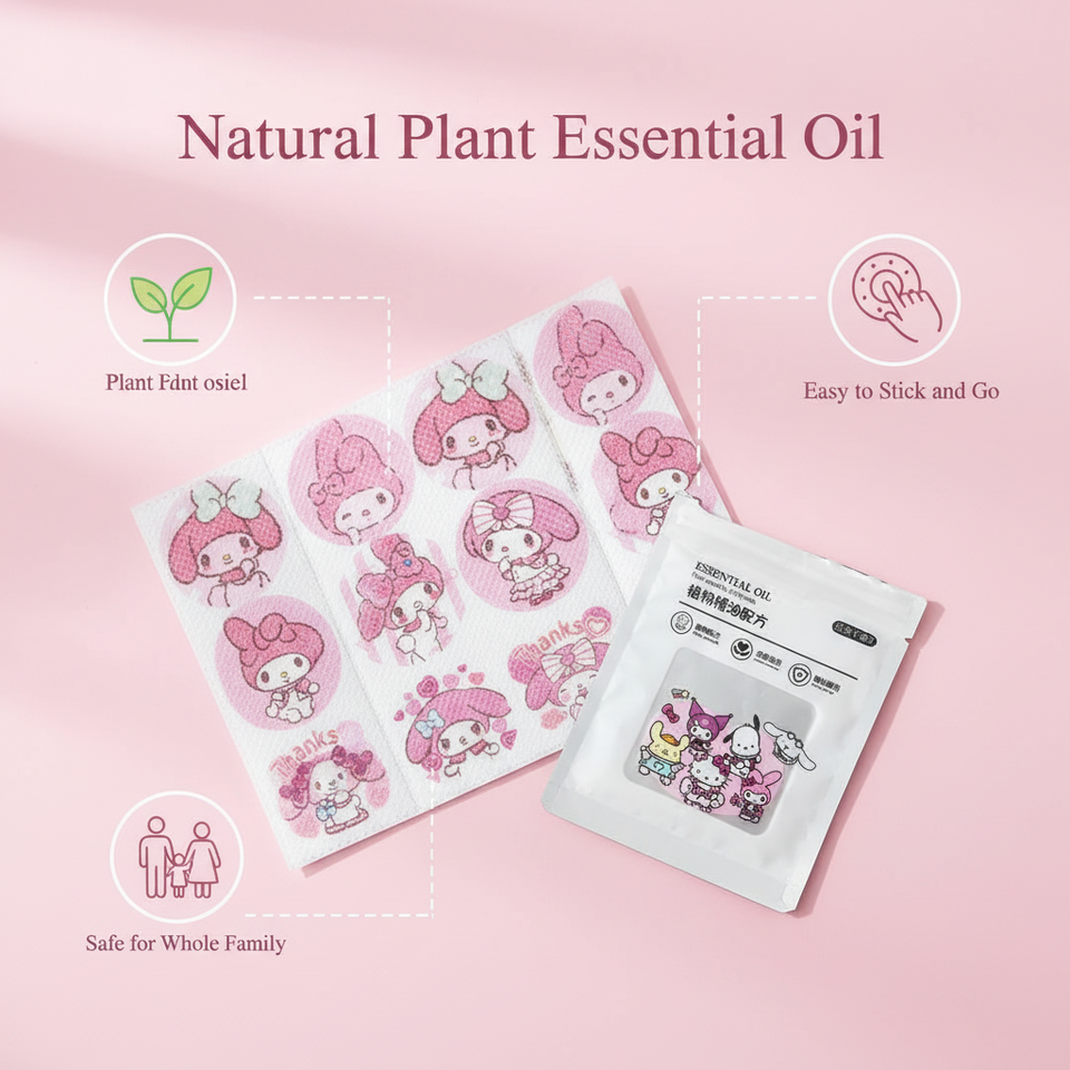 Autocollants anti-moustiques portables à motif de dessin animé pour adultes et enfants, à base d'huiles essentielles végétales, fournitures de prévention des moustiques pour l'extérieur