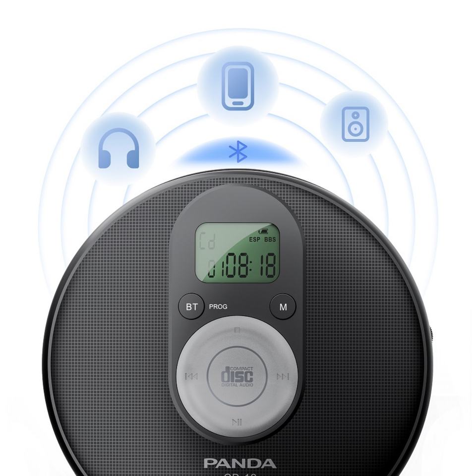 Lecteur CD personnel portable Discman, lecteur de musique CD/MP3 avec émetteur BT, système de surpression des basses 5.4