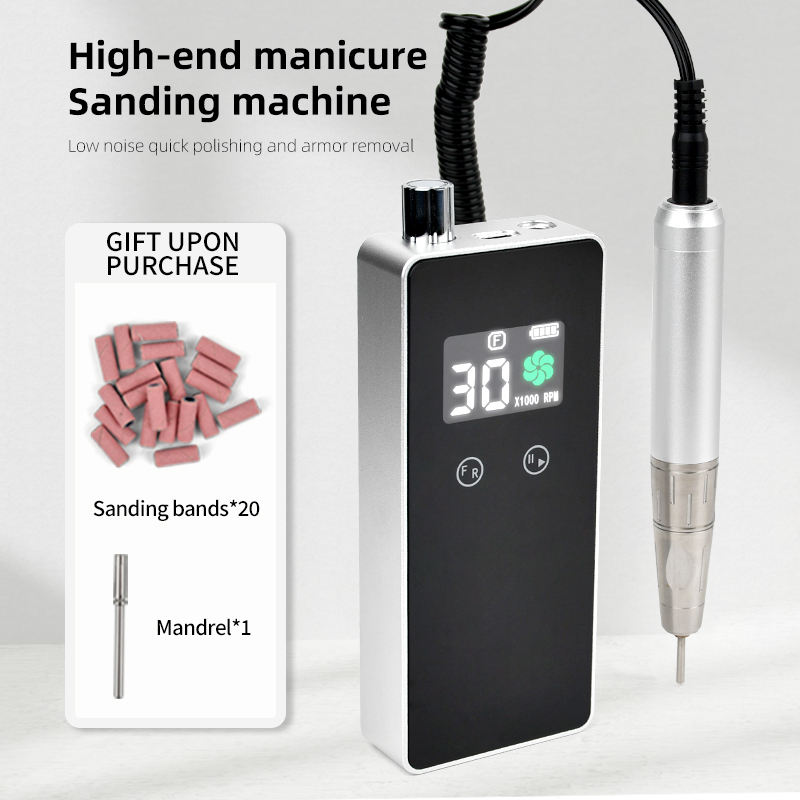 Machine portative de polisseuse à ongles en plastique moteur sans brosse perceuse à ongles électrique rechargeable 30000 tr/min 8 heures d'autonomie de la batterie