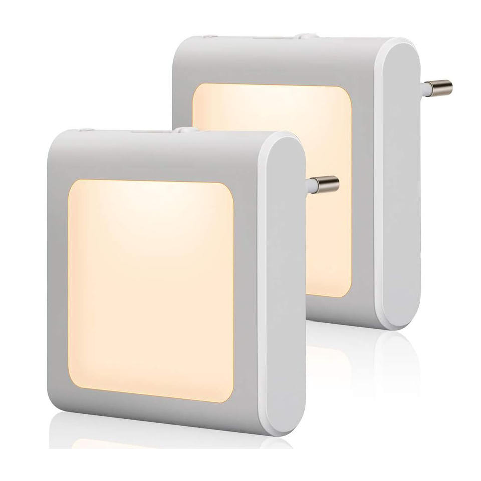 Veilleuse LED murale portable à brancher, moderne, avec capteur crépusculaire automatique (allumage/extinction), pour chambre à coucher, couleur chaude, mini carrée, à intensité variable