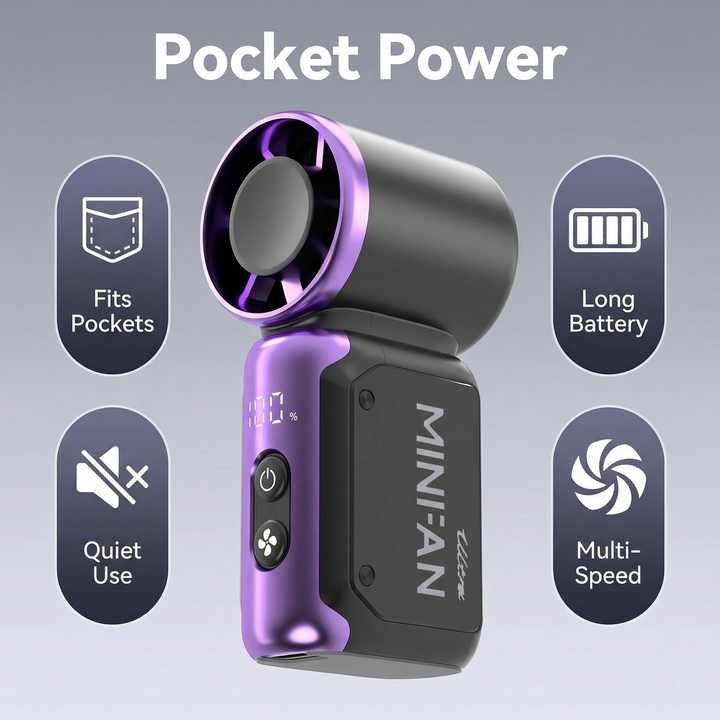 Ventilateur de poche portable, mini ventilateur à main avec réglage du vent pour le maquillage et les voyages, autonomie 24h