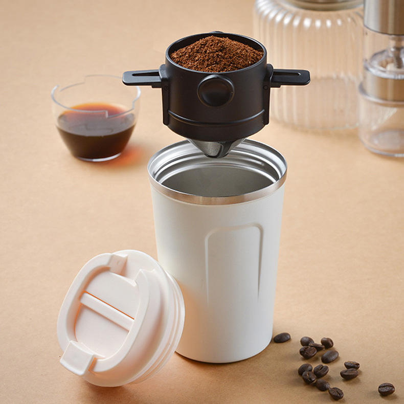 Portable verser sur le fabricant de goutteur de café et tasses et tasse en gros flacon en acier inoxydable voyage Thermos thé tasse à café gobelet