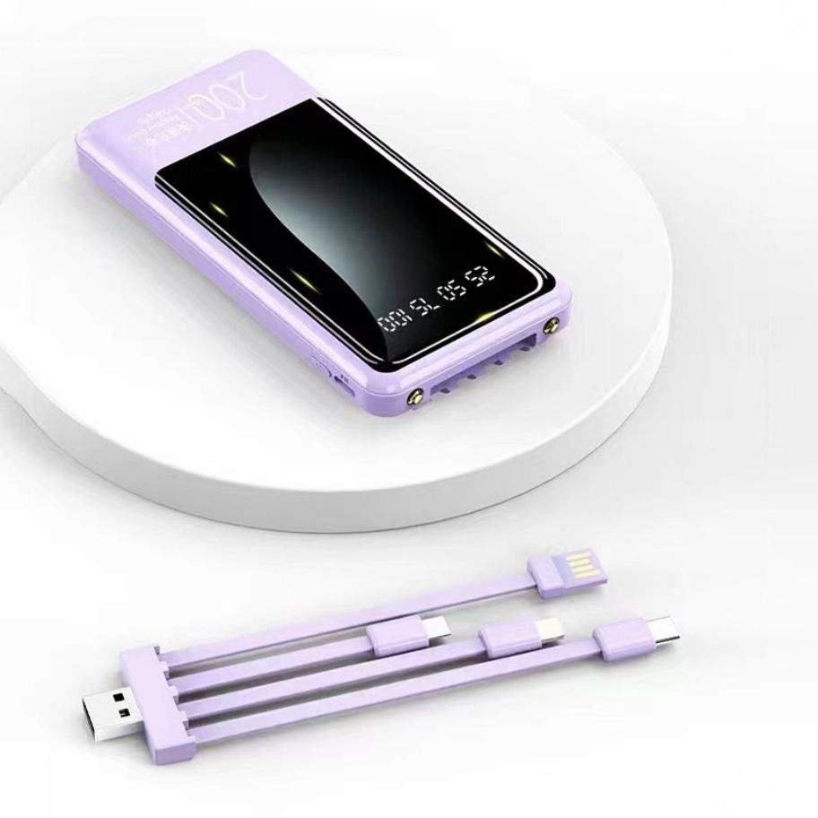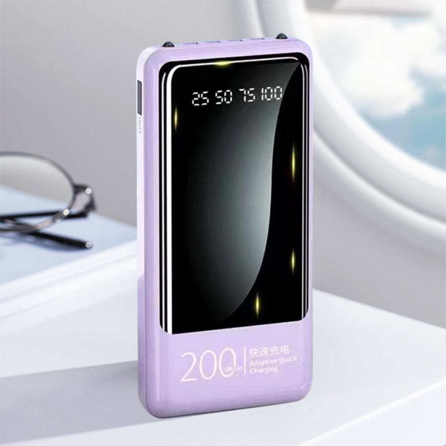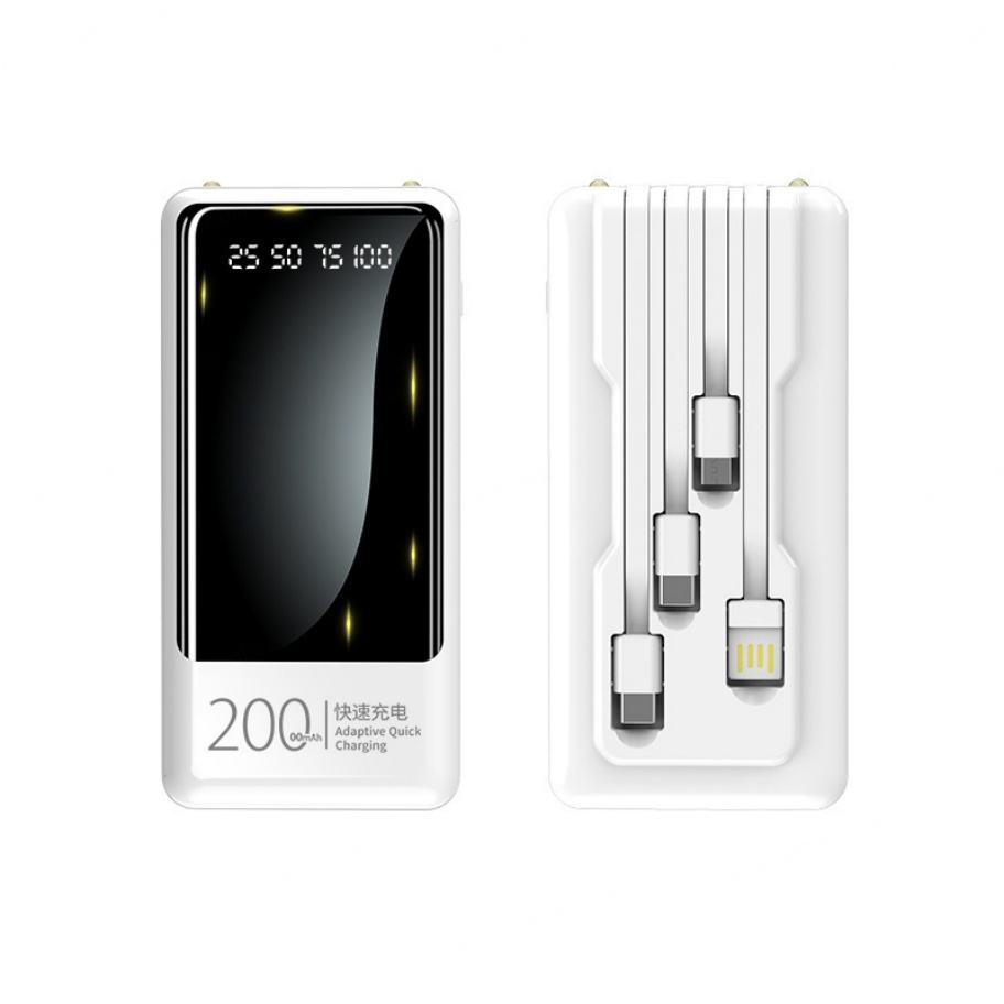 Batterie externe portable avec charge rapide USB, chargeur de voyage 10000mAh 20000mAh, 4 câbles intégrés, écran numérique, batterie Li-Polymère