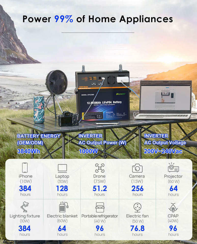 Centrale électrique portable 1000W utiliser batterie LiFePO4 12V 100AH 120AH 150AH 170AH avec Kit de conversion de prise CA 220V USB Type C