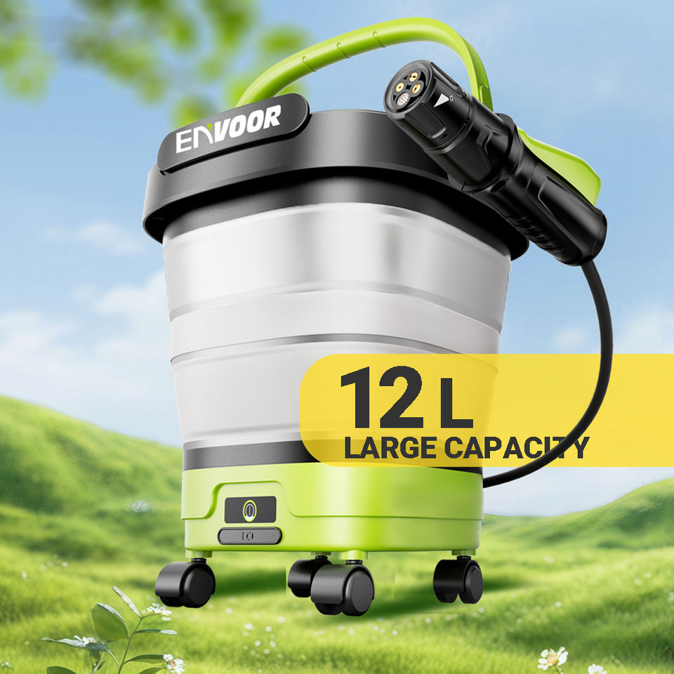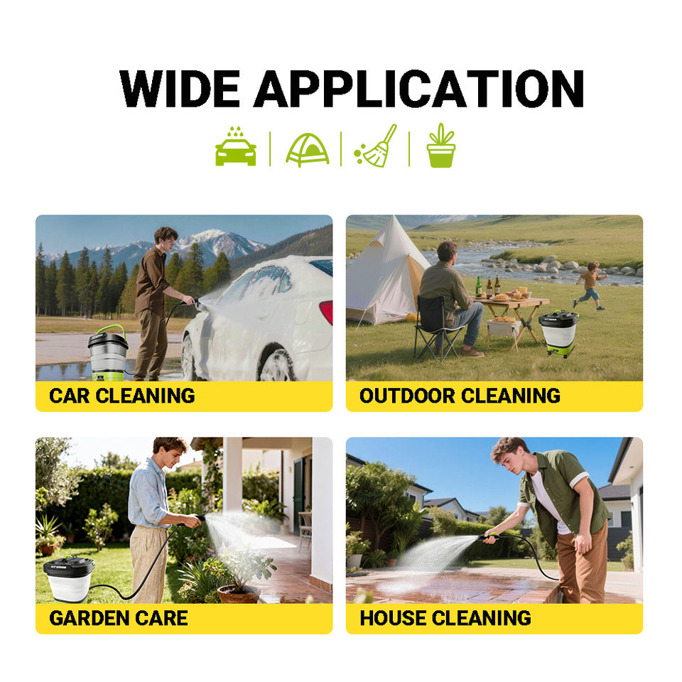 Nettoyeur haute pression portable sans fil avec réservoir d'eau pliable de 12 L, batterie de 2000 mAh, charge Type-C pour voiture, vélo, camping