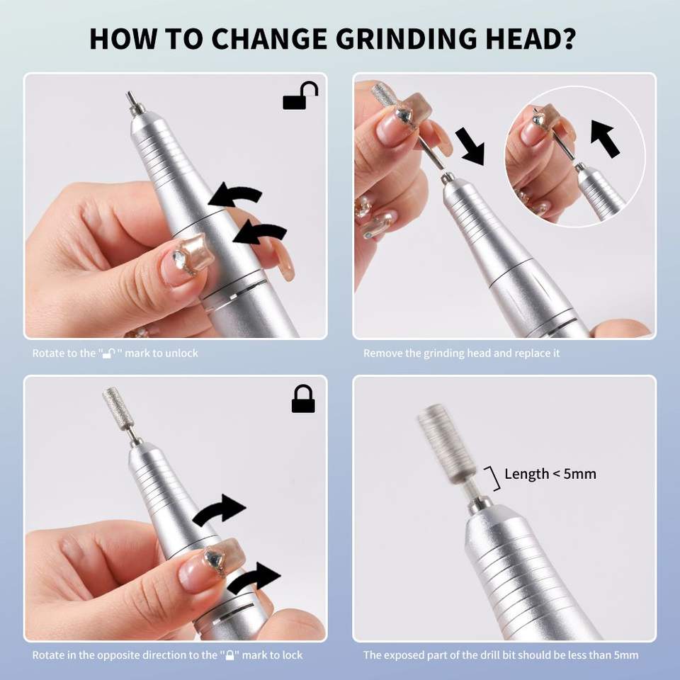 Kit de perceuse à ongles électrique rechargeable portable 45000 tr/min, lime à ongles électrique sans fil pour ongles en acrylique