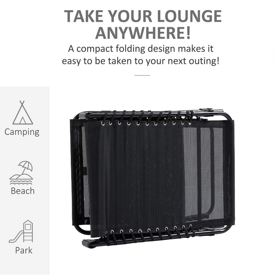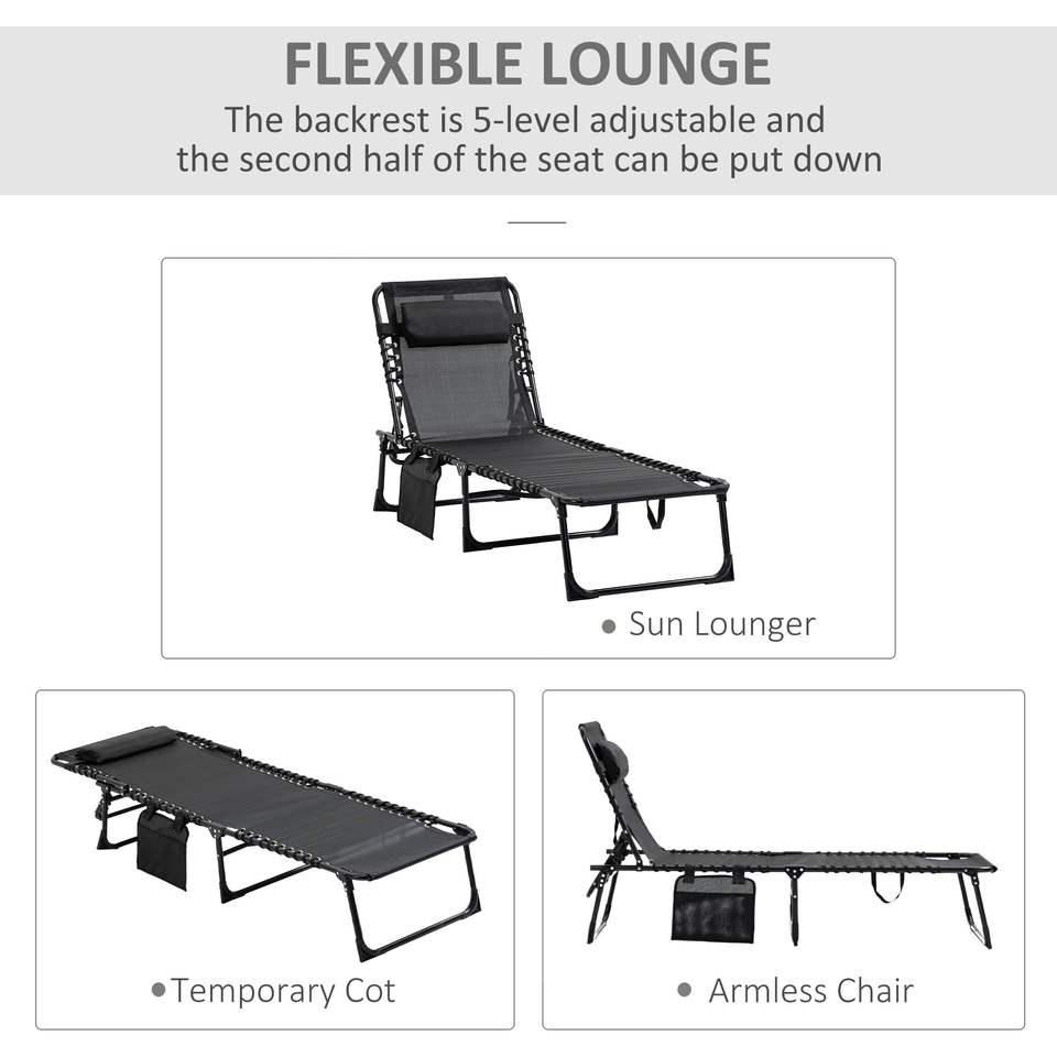 Chaise longue portable inclinable avec dossier réglable et coussin amovible, lit de camping pliable pour se prélasser au soleil