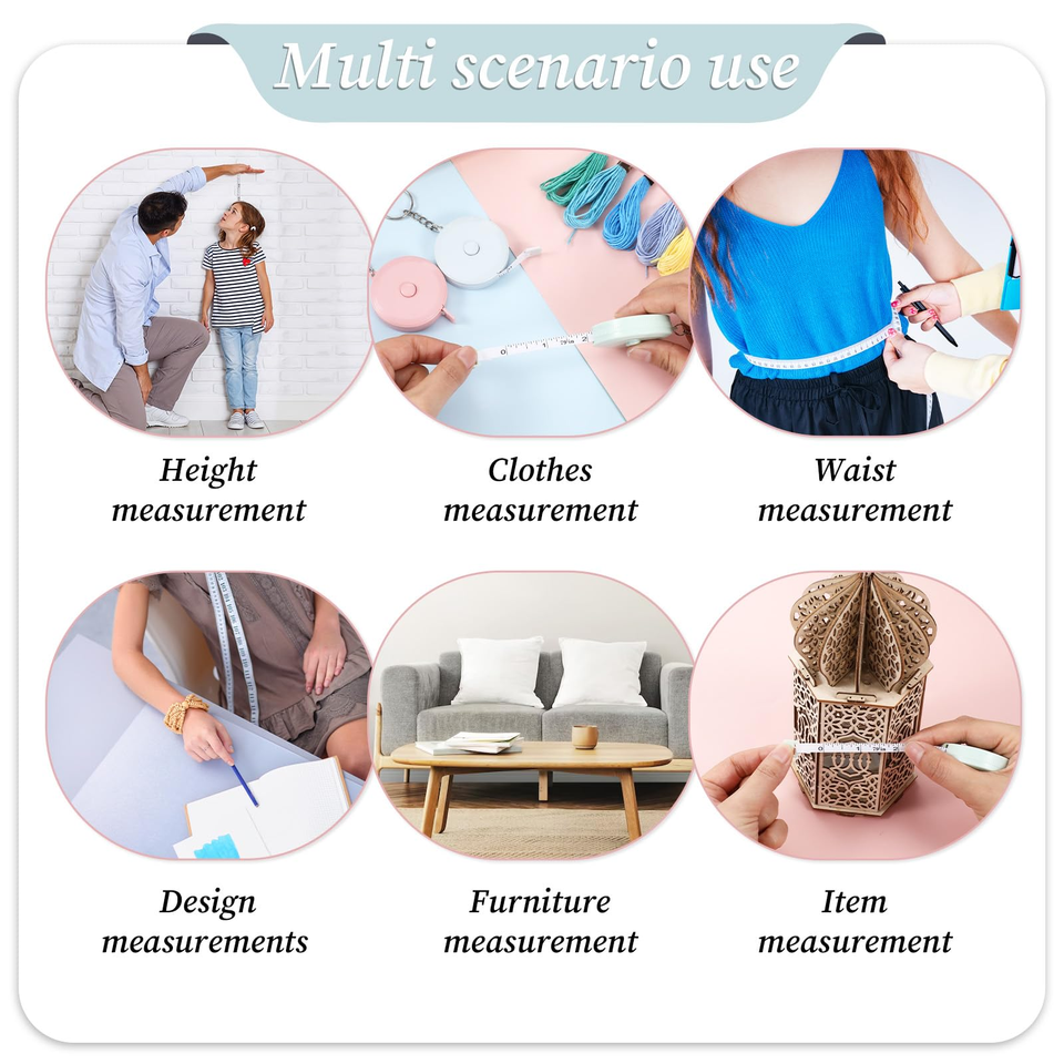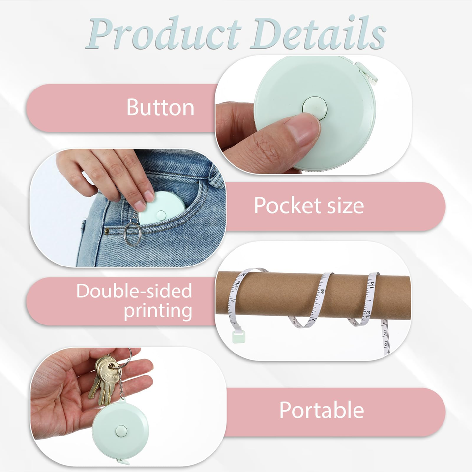Mètre ruban rond portable avec fonction de rétraction automatique, couleurs pastel, pour la mesure corporelle et les cadeaux