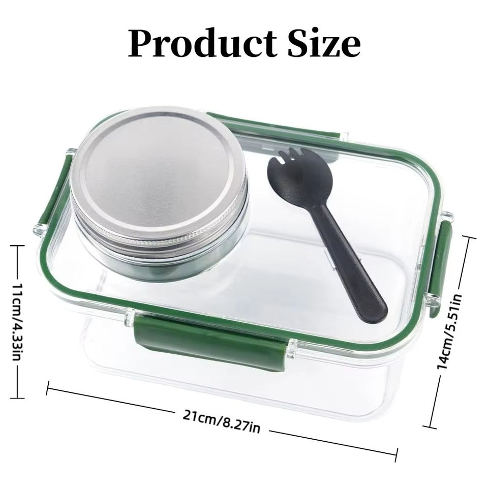 Boîte à salade portable en plastique, pot Mason, compartiment à condiments, fourchette, récipient à salade, transparent, étanche, boîte de conservation