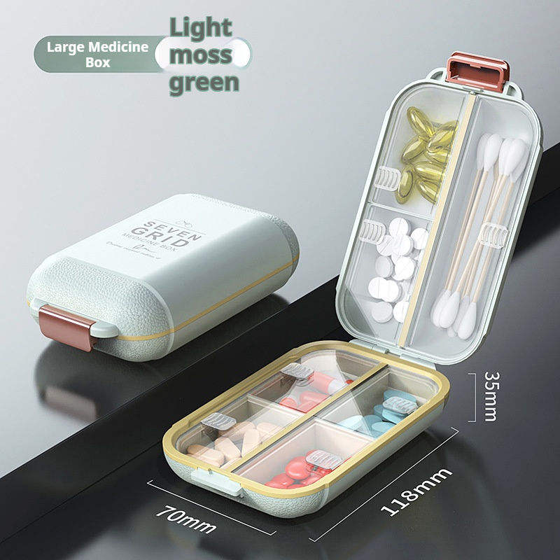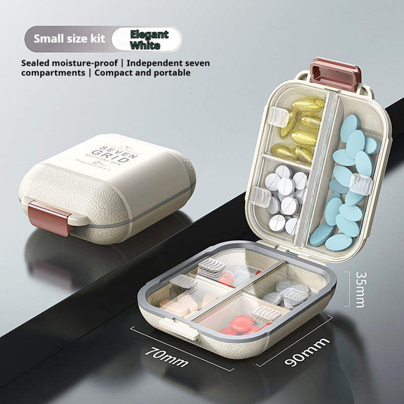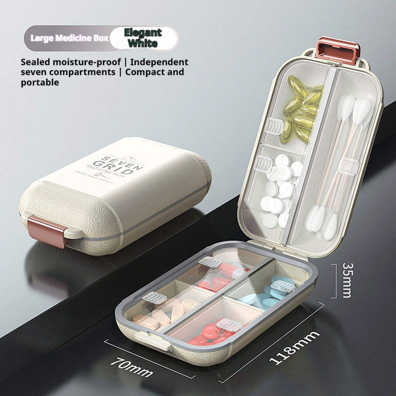 Boîte de rangement portable à sept compartiments en PP anti-poussière avec couvercle pour médicaments de voyage