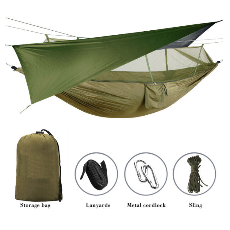 Hamac de Camping Parachute, lit-balançoire simple, Double, robuste, en Nylon, avec bâche de pluie, moustiquaire, tente, sangles d'arbre, offre spéciale
