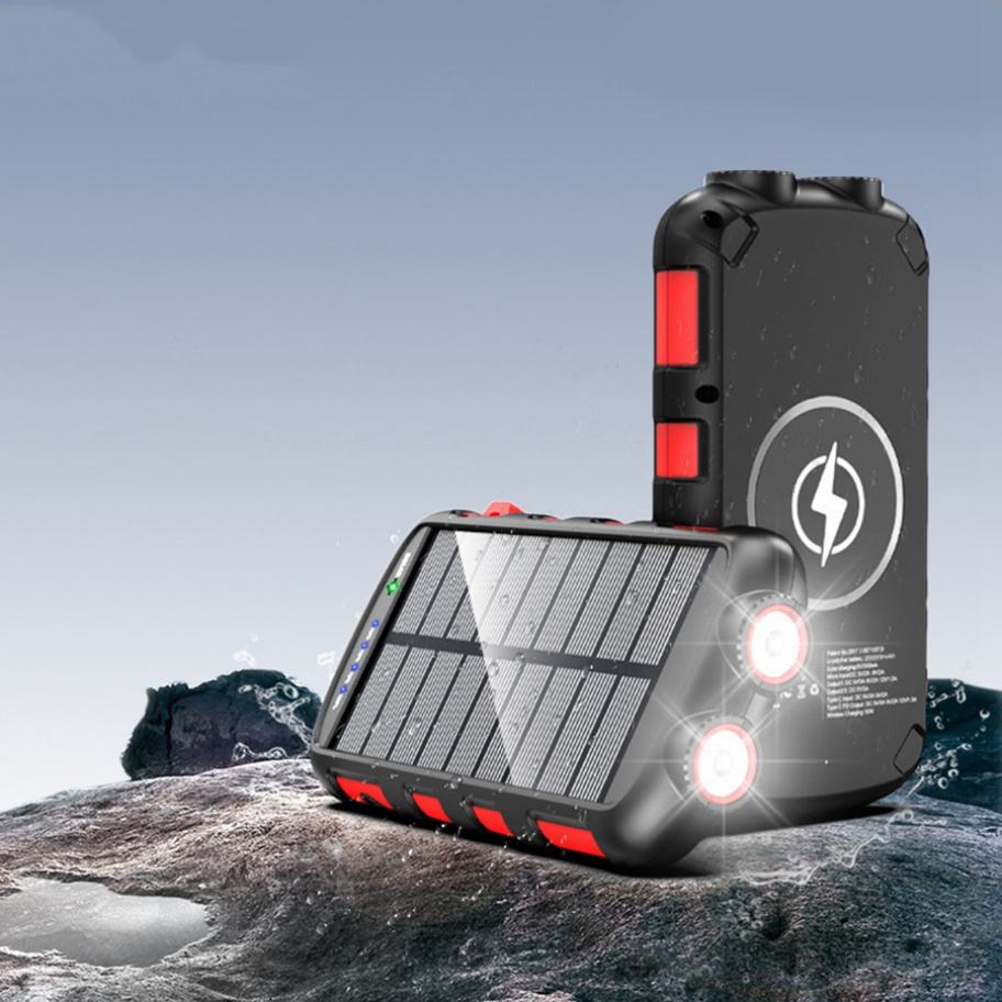 Chargeur solaire portable, étanche, multifonction, batterie externe 20000mah, charge rapide bidirectionnelle