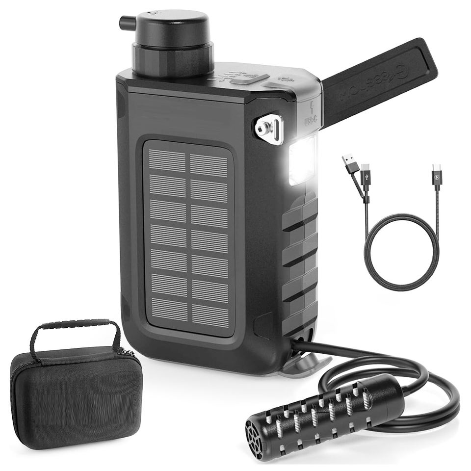 Purificateur d'eau portable, lampe de secours, idéal pour les voyages, la randonnée et la chasse.