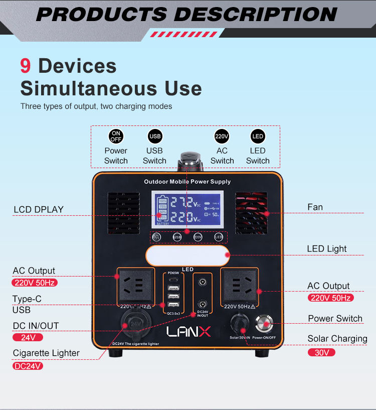 Station d'alimentation solaire portable AC 110V 220V avec batterie LiFePO4 pour le camping en extérieur et la recharge