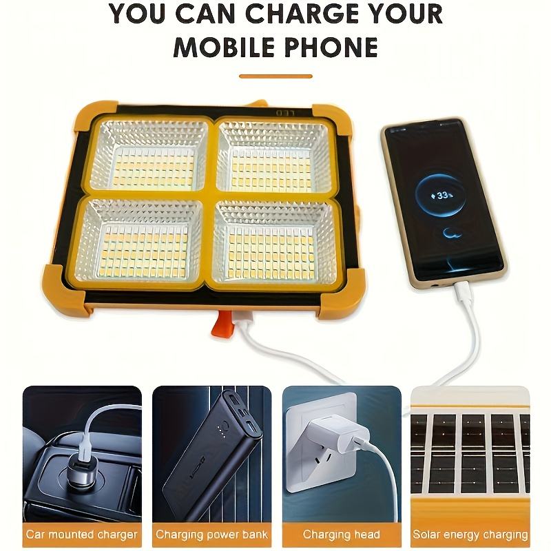 Projecteurs LED Solaires Portables IP66 en ABS pour Camping Extérieur, Urgences Domestiques, avec Batterie Rechargeable, Intensité Réglable, pour Éclairage Routier