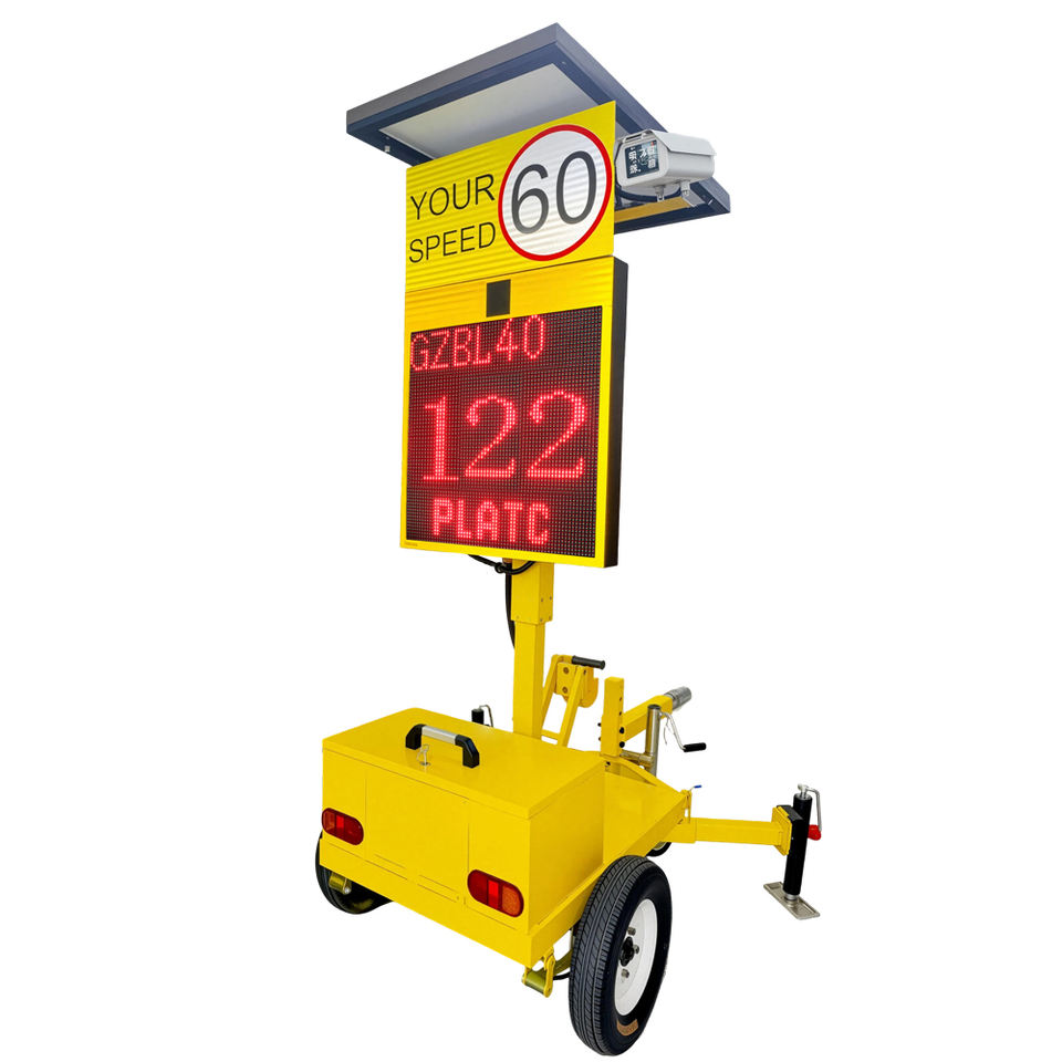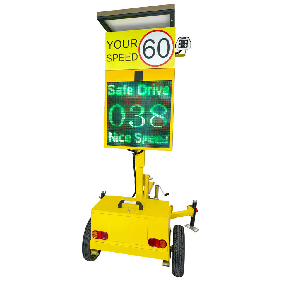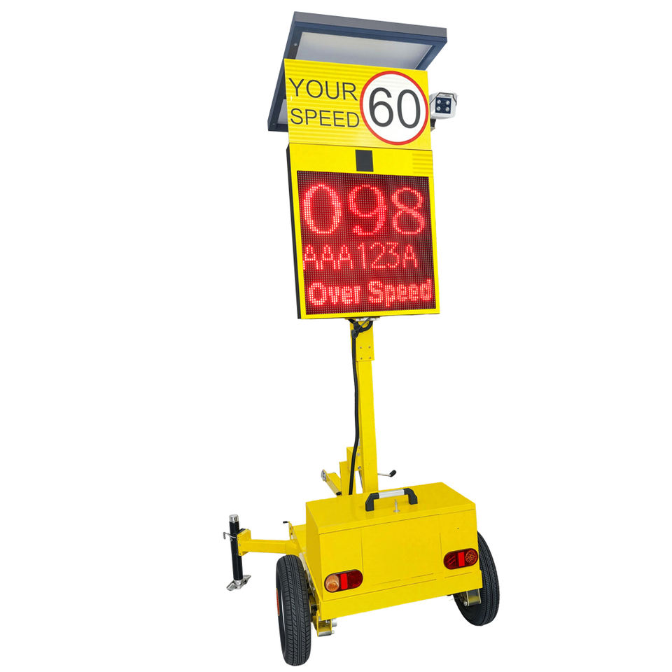 Panneau de signalisation de vitesse portable à radar solaire pour remorques, caméra de circulation verte et rouge