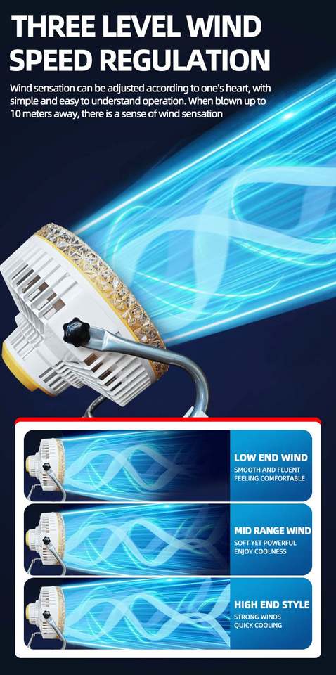 Ventilateur portable à LED rechargeable à l'énergie solaire, éclairage blanc froid, ventilateur sur pied pour le camping