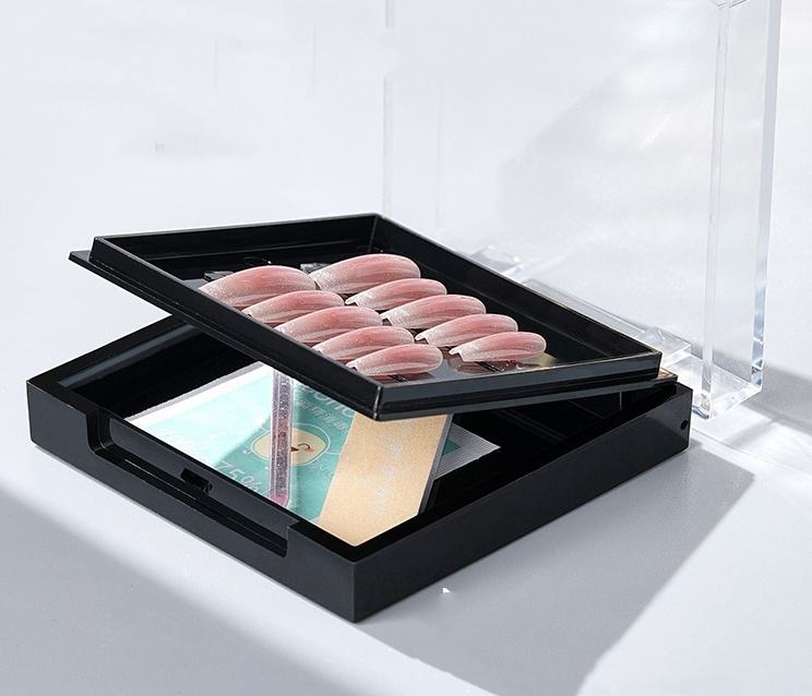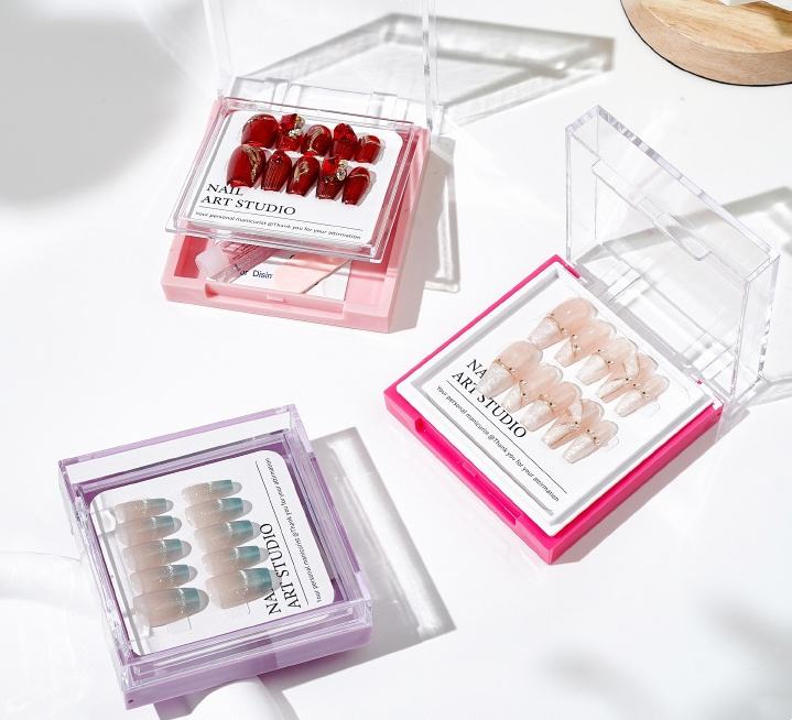 Affichage Portable en plastique solide Double couche pour presse sur les ongles en acrylique Boîtes de rangement carrées pour ongles avec emballage de ruban adhésif