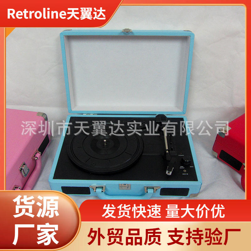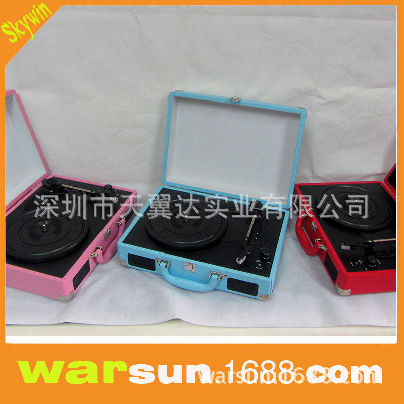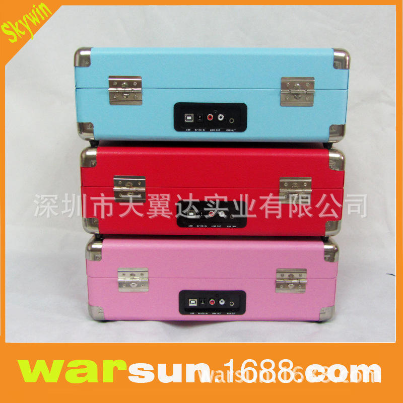 Haut-parleur portable avec étui en cuir, tourne-disque, couleurs rose, rouge, bleu, interface USB 3.0, lecteur audio portable Bluetooth