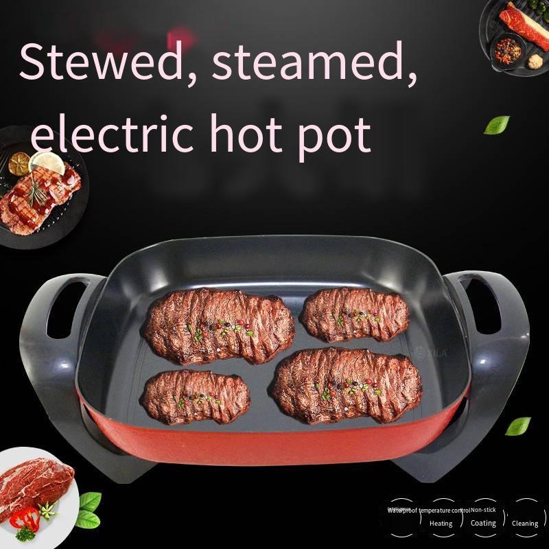 Grill électrique portable de forme carrée de 5 L, cuisine saine, antiadhésif, contrôle de la température en extérieur, démontable, pour la maison, l'hôtel