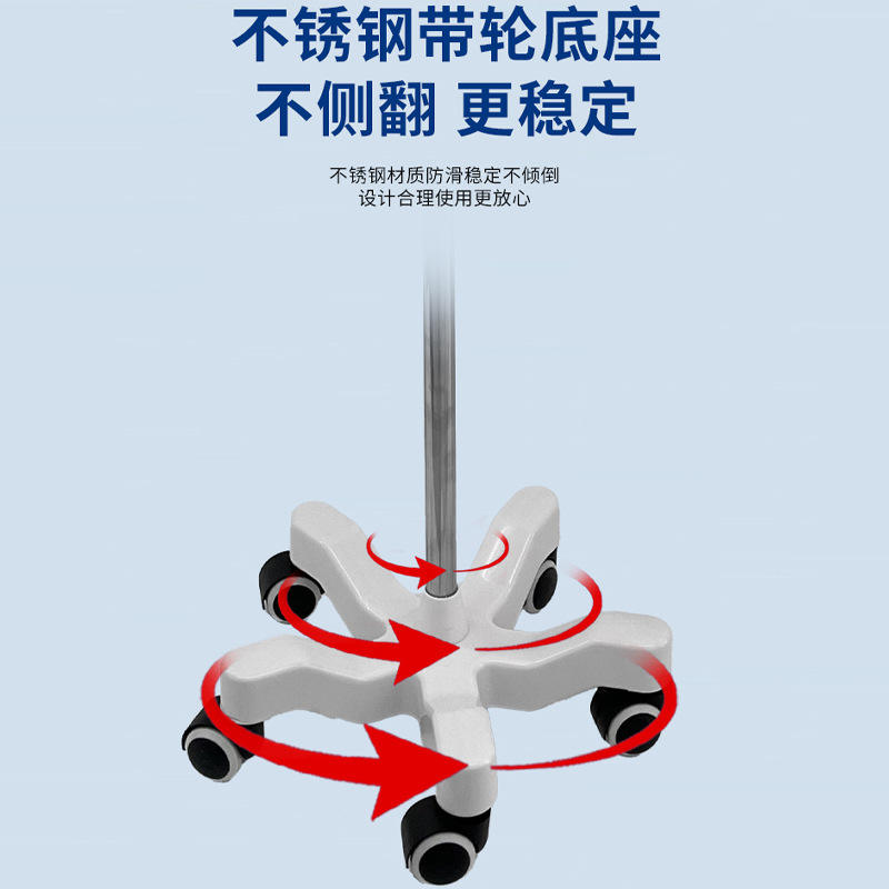 Support IV portable en acier inoxydable, épaissi et réglable avec roulettes, chariot d'hôpital en forme de fleur de prunier