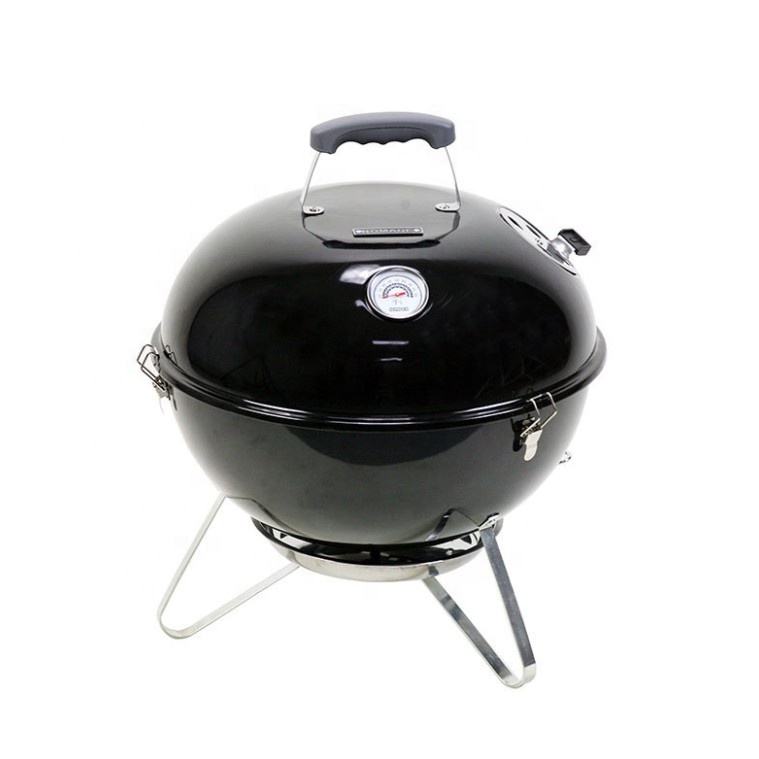 Barbecue portable en acier émaillé, mini-gril rond à charbon avec chariot amovible et charbon pliable pour rôtir en extérieur