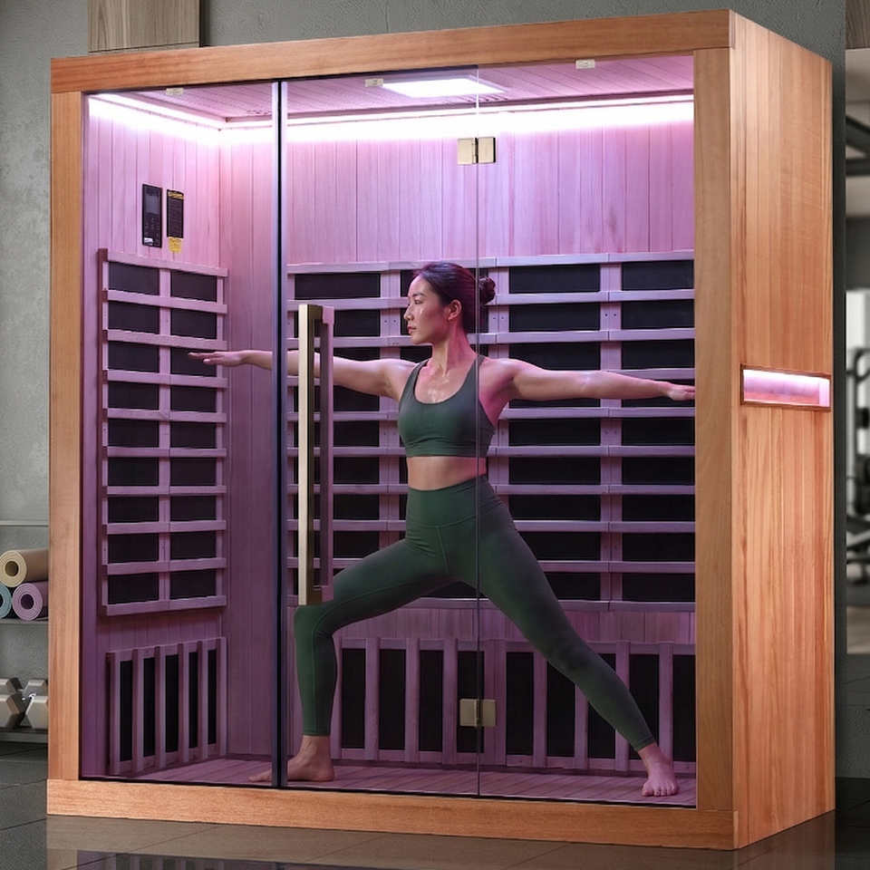 Sauna infrarouge portable pour 4 personnes, en bois de pruche canadien, cabine de sauna intérieure pour usage commercial et domestique