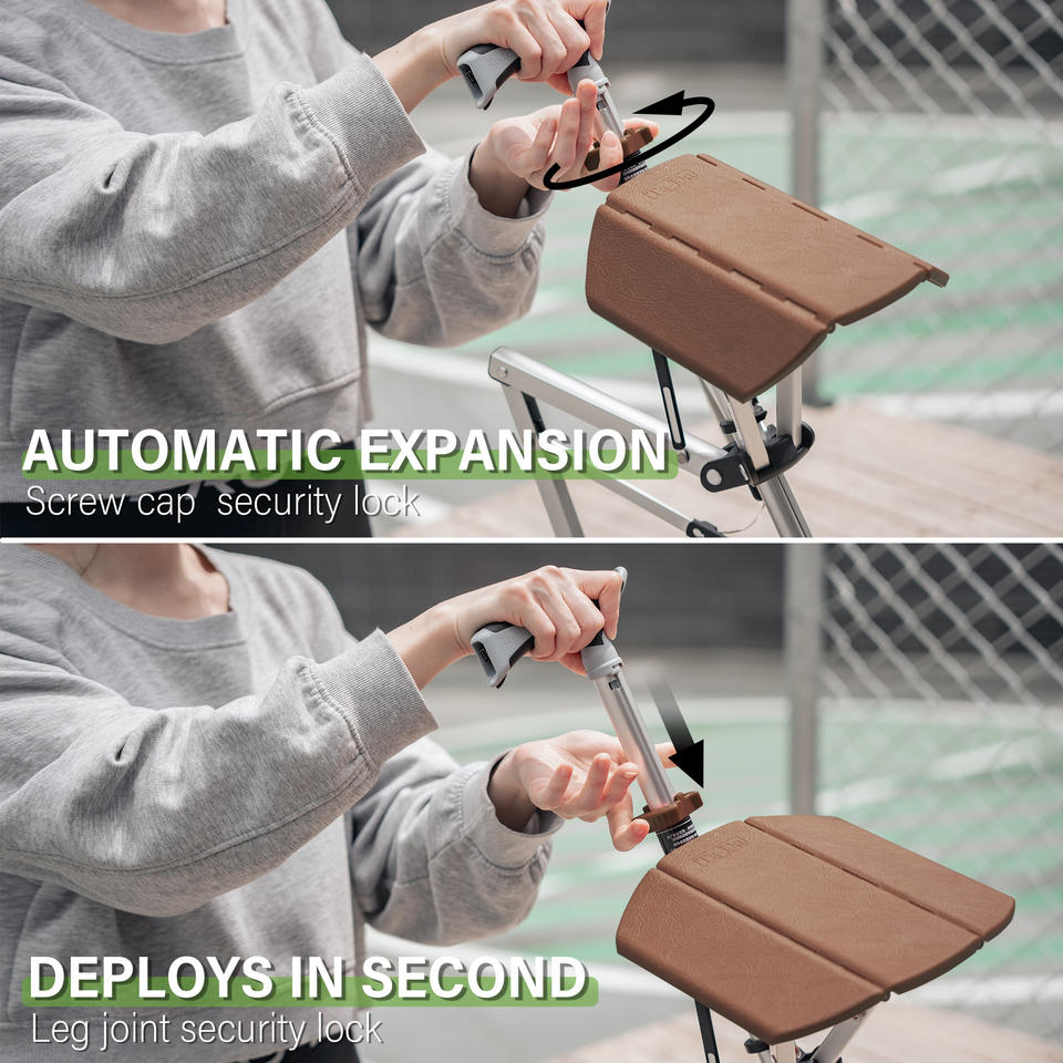 Bâtons de marche portables Ta-Da Canne à trois pattes Chaise de béquille de camping en plein air Marron 85cm avec sangle de transport à la main