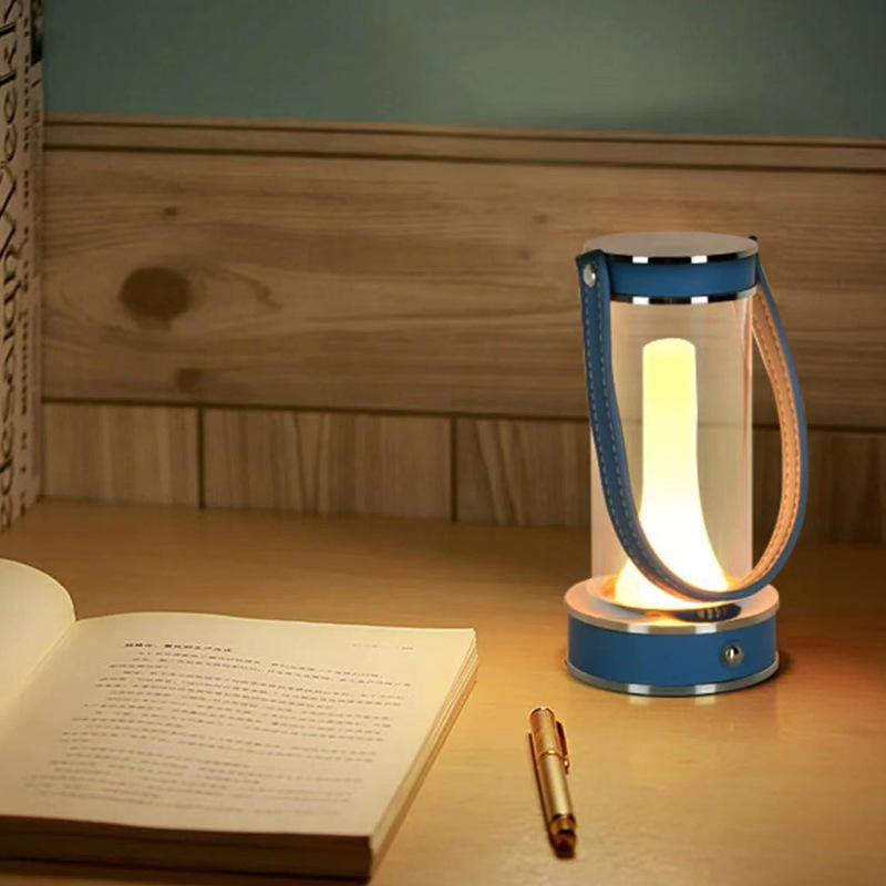 Lampe de table portable rechargeable à LED, lumière de camping, poignée bleue, D8 H16Cm, commande tactile, lanterne décorative