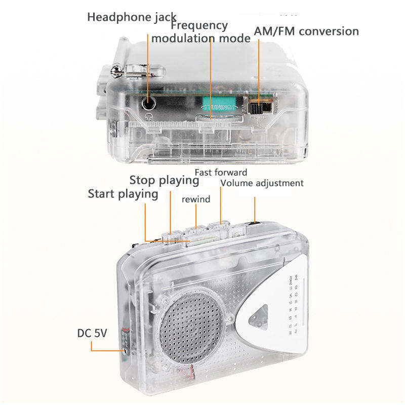 Lecteur de cassettes portable, convertisseur audio musical, radio FM AM avec casque filaire et haut-parleur