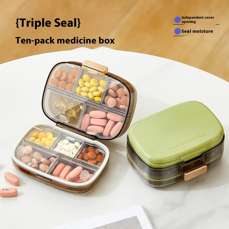 Boîte à pilules portable en plastique ABS à dix compartiments grande capacité Mini stockage de pilules matin midi soirée sept jours Divisions de la semaine