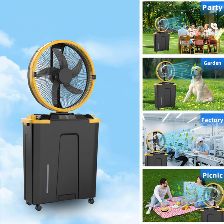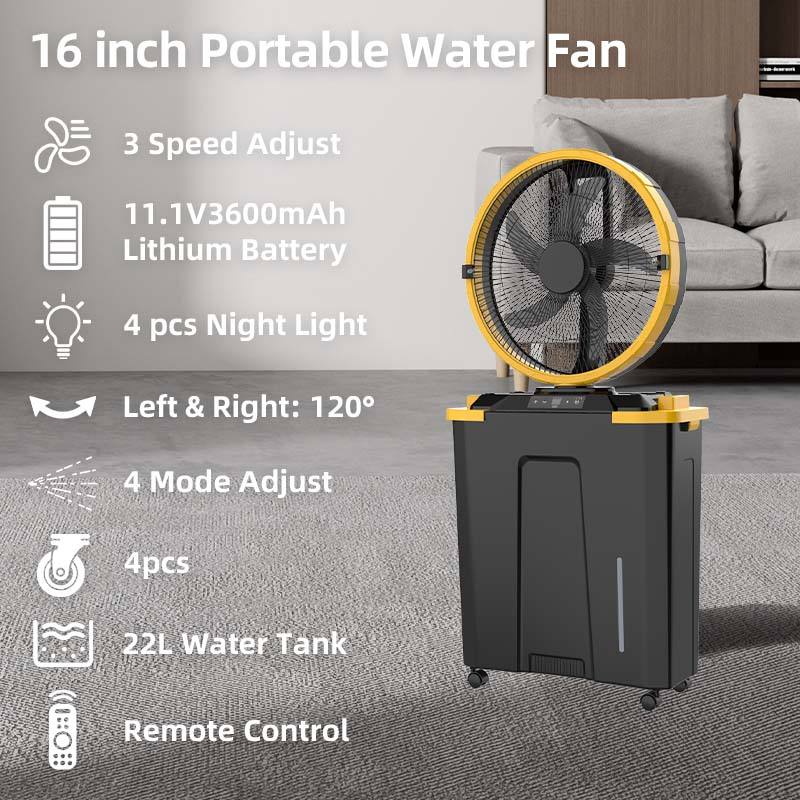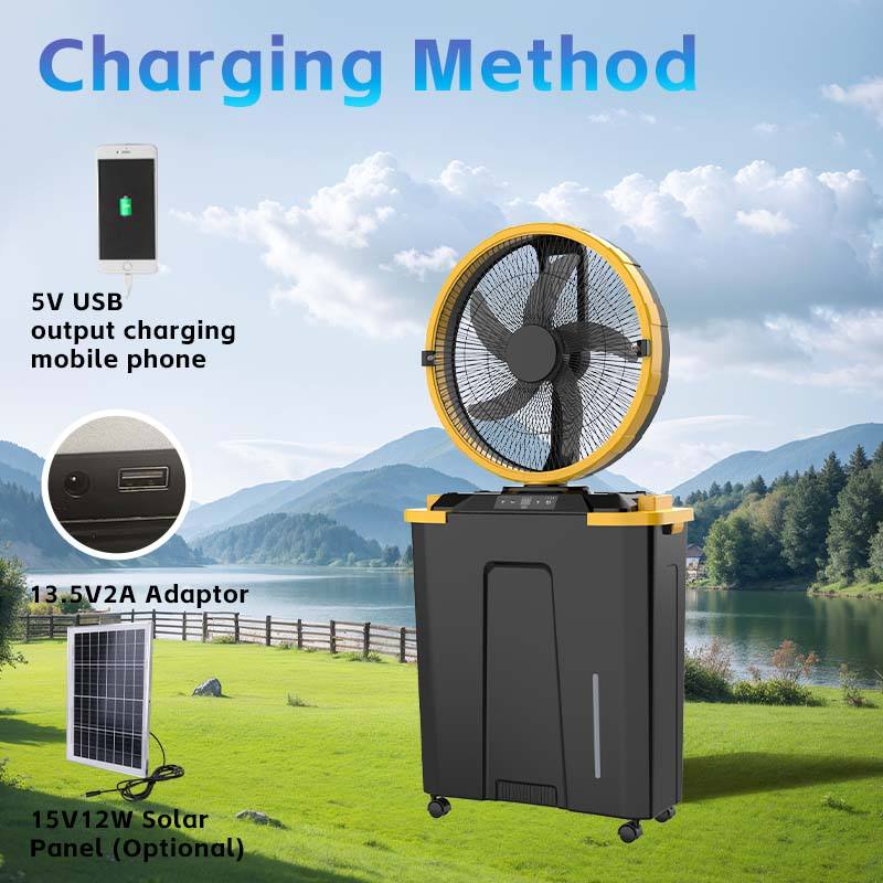 Ventilateur solaire portable avec réservoir d'eau de 22 L et batterie au lithium 11,1 V 3600 mAh pour activités domestiques, extérieures, course à pied et salle de sport
