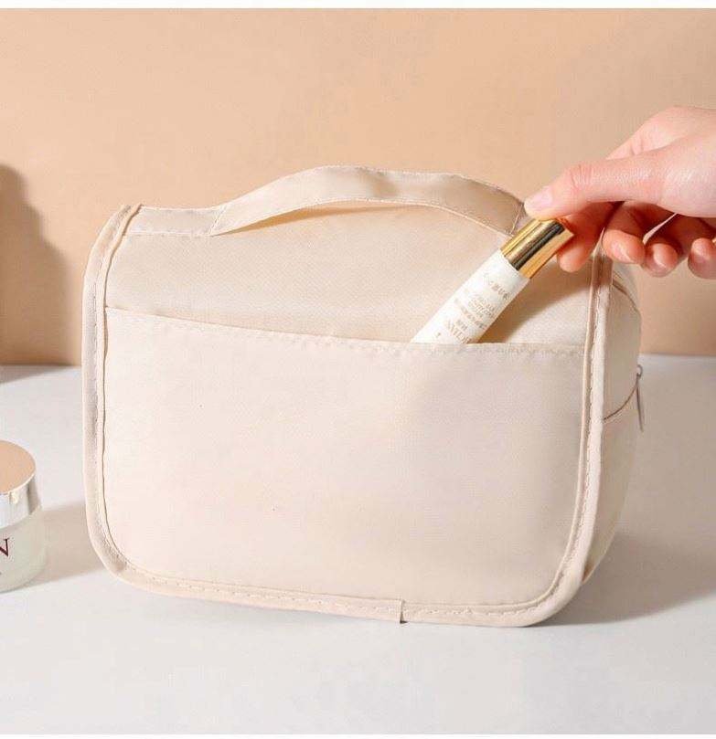 Sac de toilette portable imperméable en tissu 100% polyester avec crochet de suspension pour femmes et hommes, grande capacité, rangement cosmétique de voyage