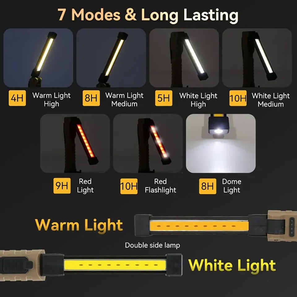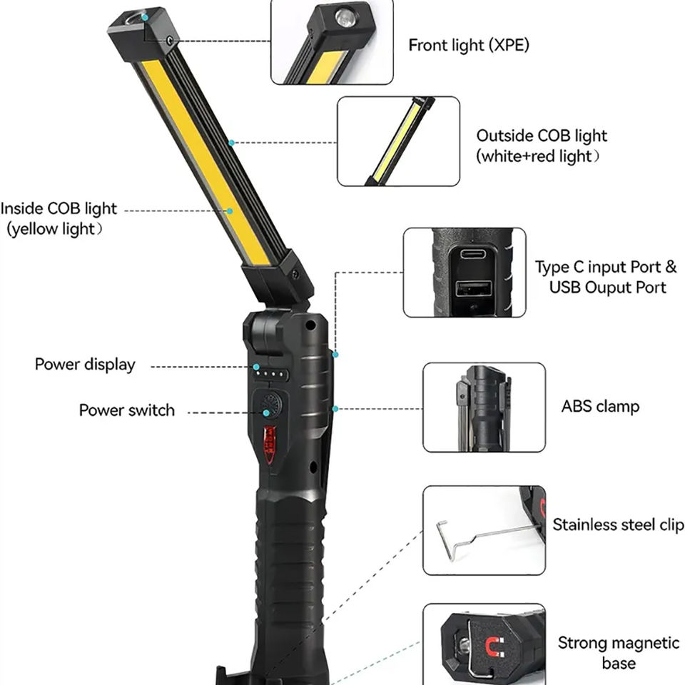 Lampe torche portable avec base magnétique, lampe de travail rechargeable, lampe d'atelier, lumière blanche/rouge, lampe de camping pour garage