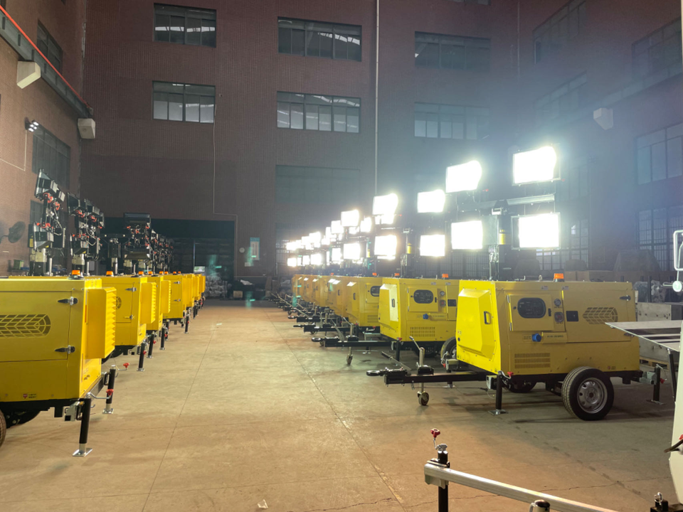 Générateur diesel portable remorquable avec tour d'éclairage LED pour l'exploitation minière, à louer