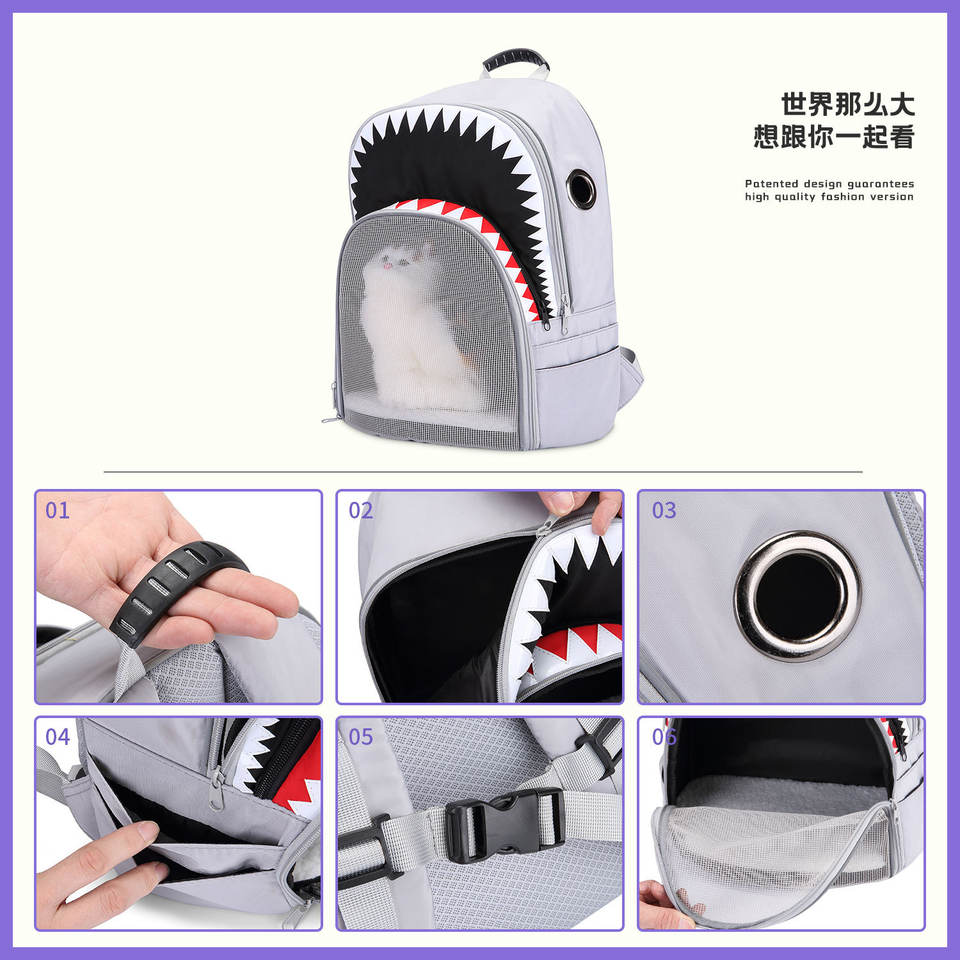 Sac à dos portable transparent en forme de requin pour animaux de compagnie, pour chiens et chats, respirant, pour sorties, blanc grisâtre, capacité 18000