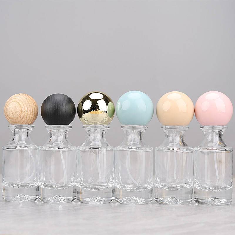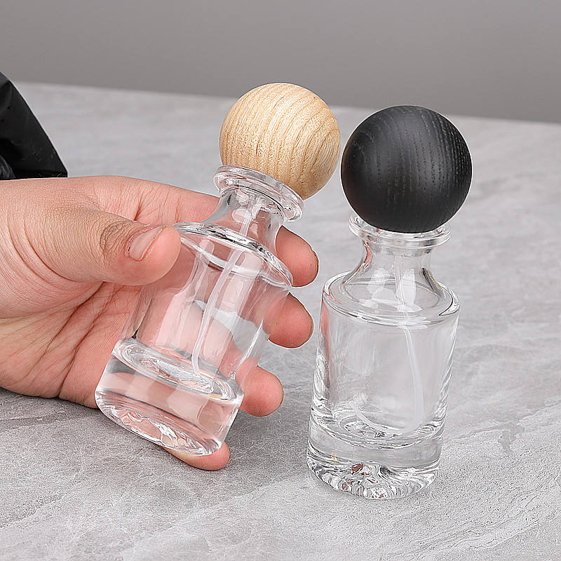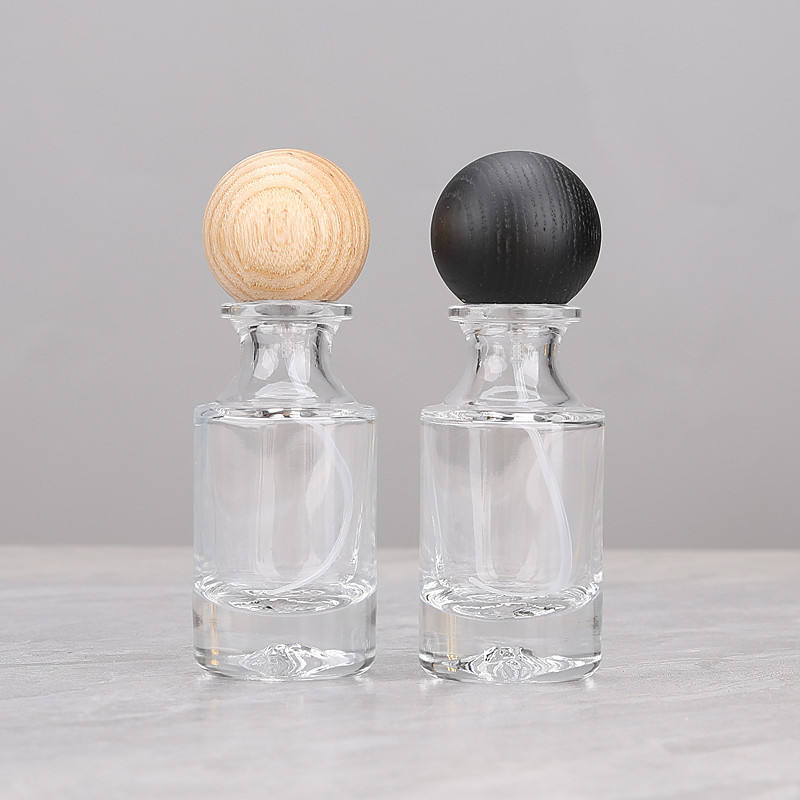 Flacon vaporisateur de parfum portable en verre rechargeable de 30 ml avec couvercle en bois de noyer, conteneur vide pour échantillons cosmétiques pour usage extérieur