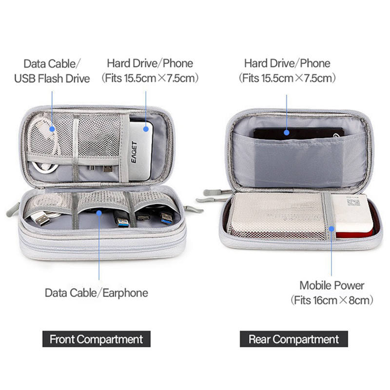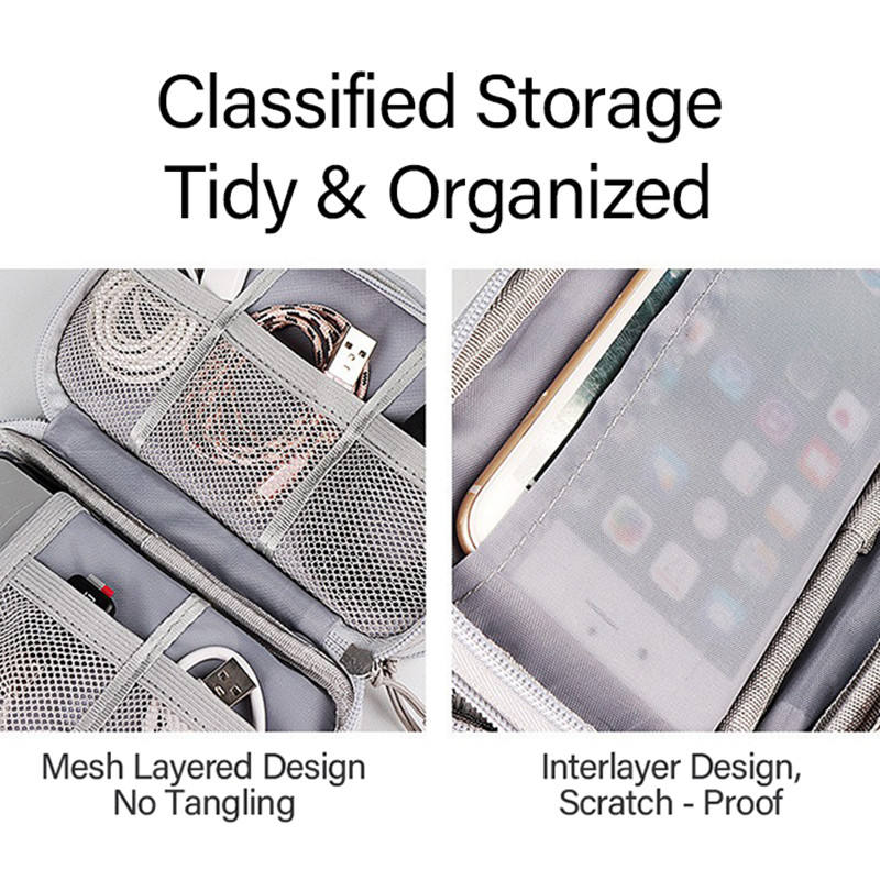 Pochette de rangement portable avec fermeture éclair pour accessoires de voyage, organisateur de bureau et de câbles en similicuir pour les vacances