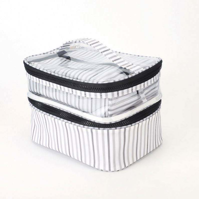 Sac de rangement de maquillage portable de voyage à grande capacité, double couche, transparent en PVC, sac de toilette pour femme, trousse de cosmétiques