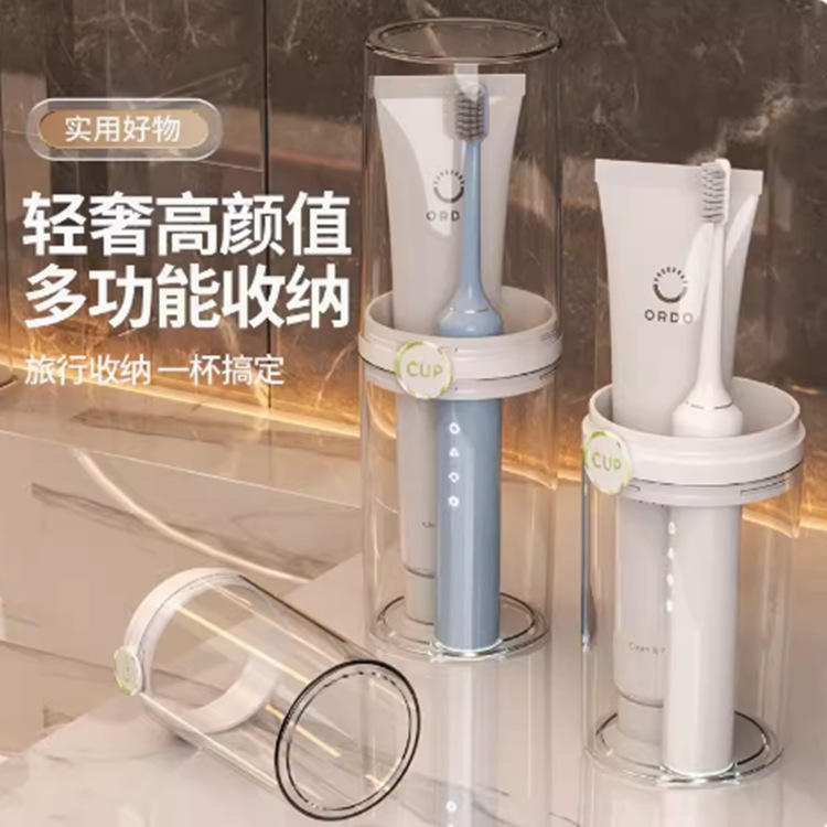 Ensemble de gobelets de voyage portables pour brosses à dents, transparents, gris et blancs, anti-poussière, pour la salle de bain et les voyages