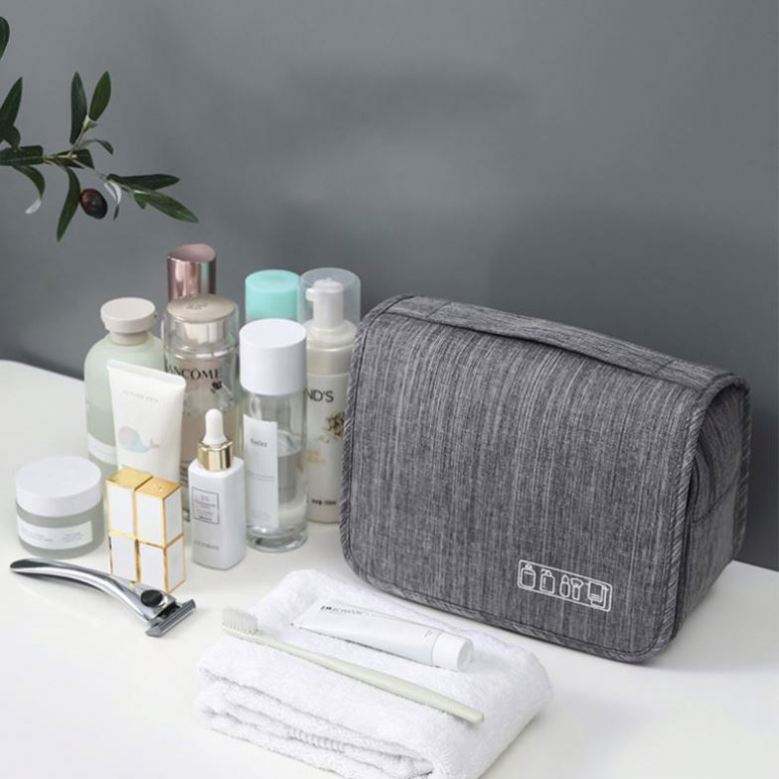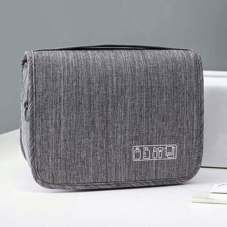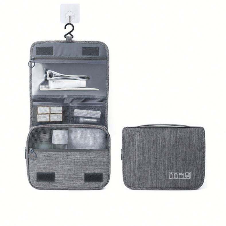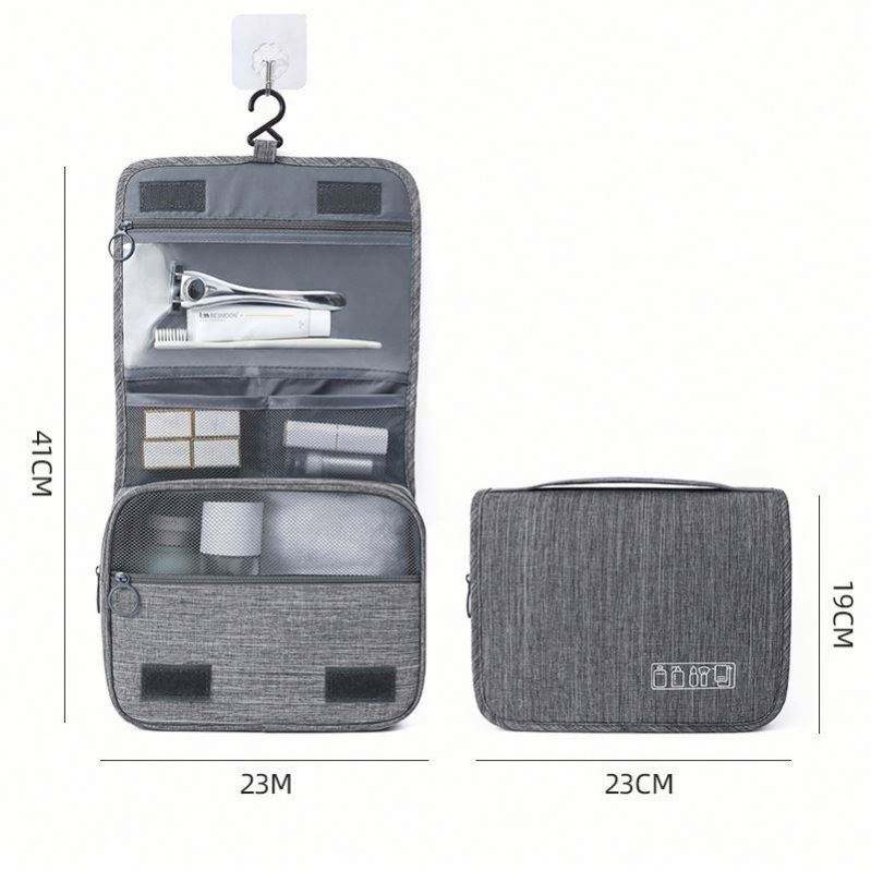 Sac de rangement cosmétique portable en polyester imperméable pour voyage, avec séparation sec/humide, trousse de toilette suspendue