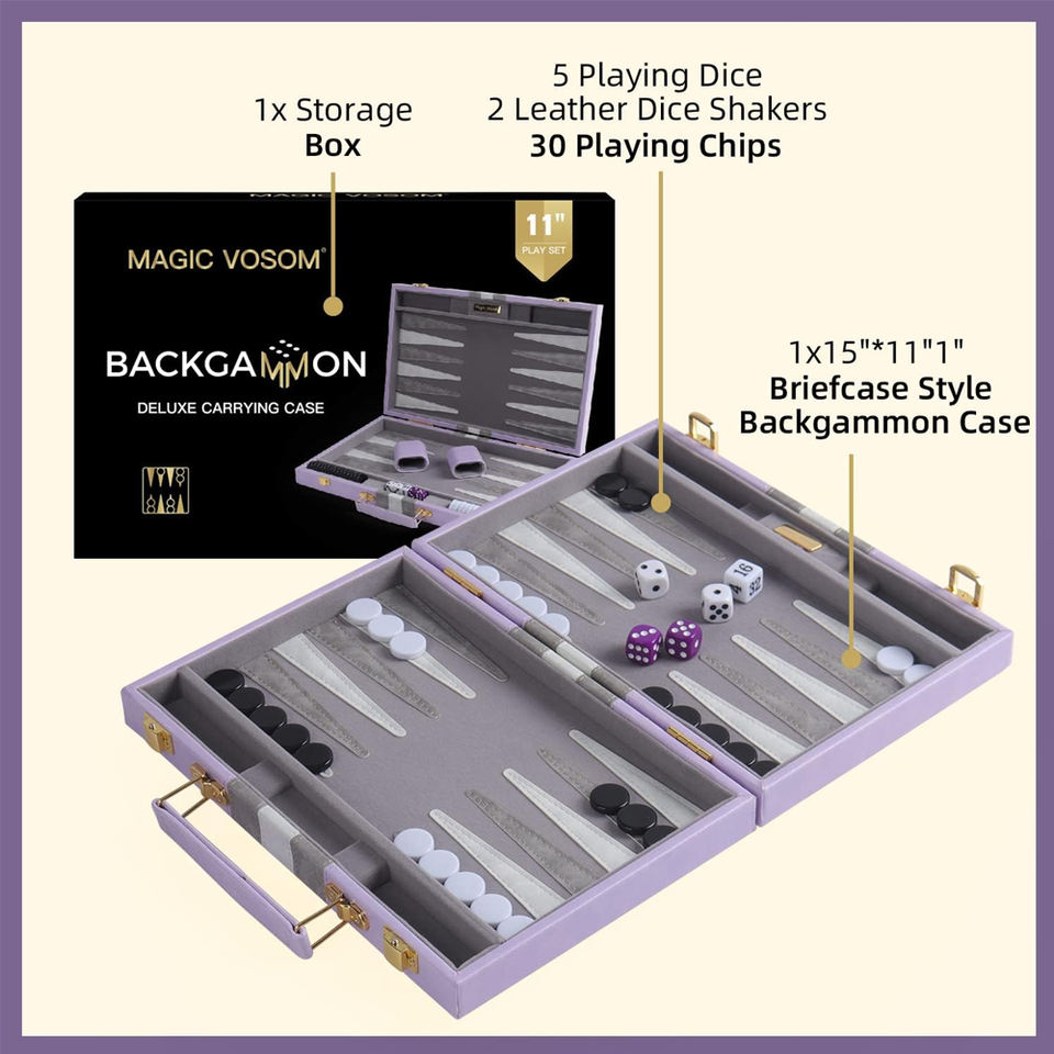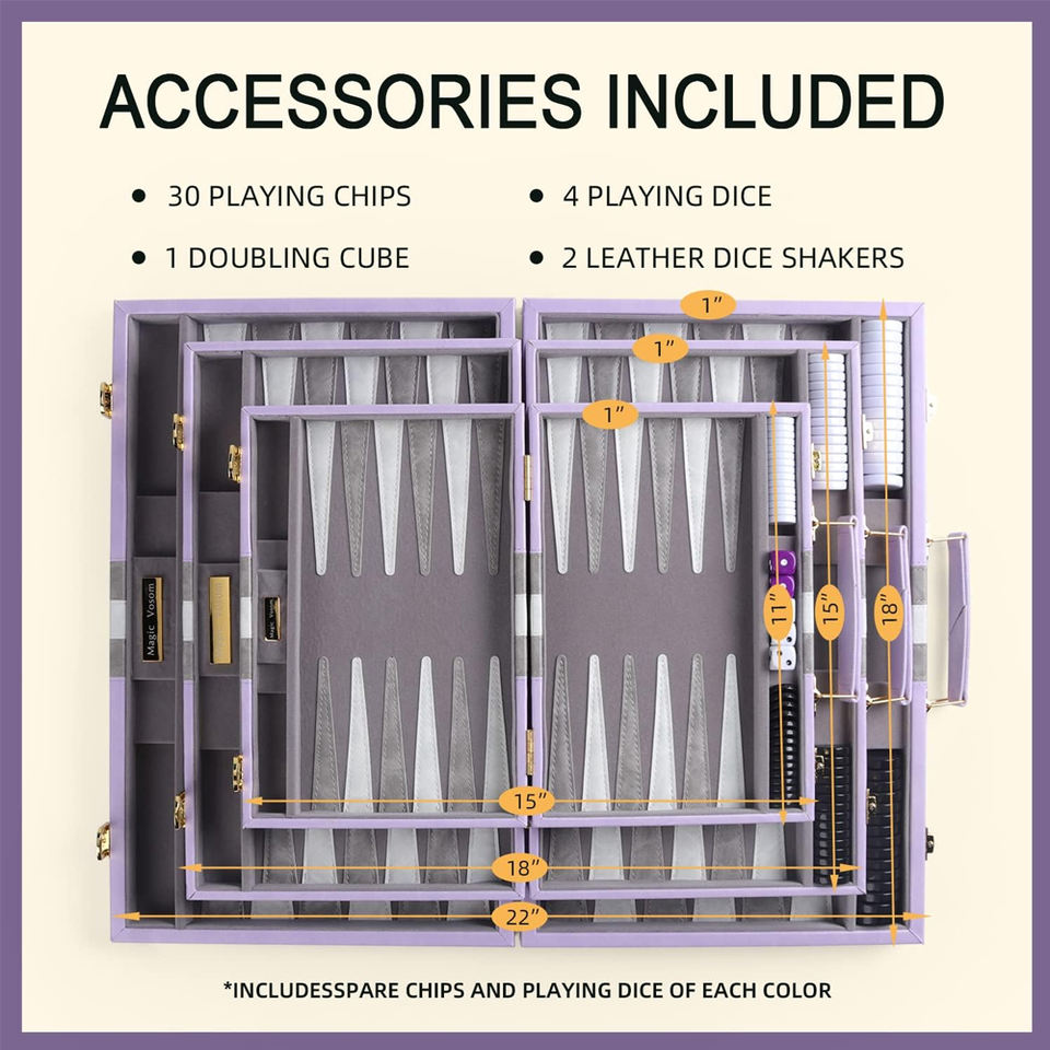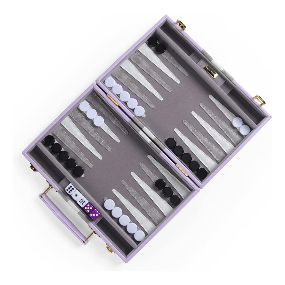 Ensemble de jeu de backgammon de stratégie de voyage portable pour adultes jeu de société violet classique avec étui en cuir de qualité supérieure