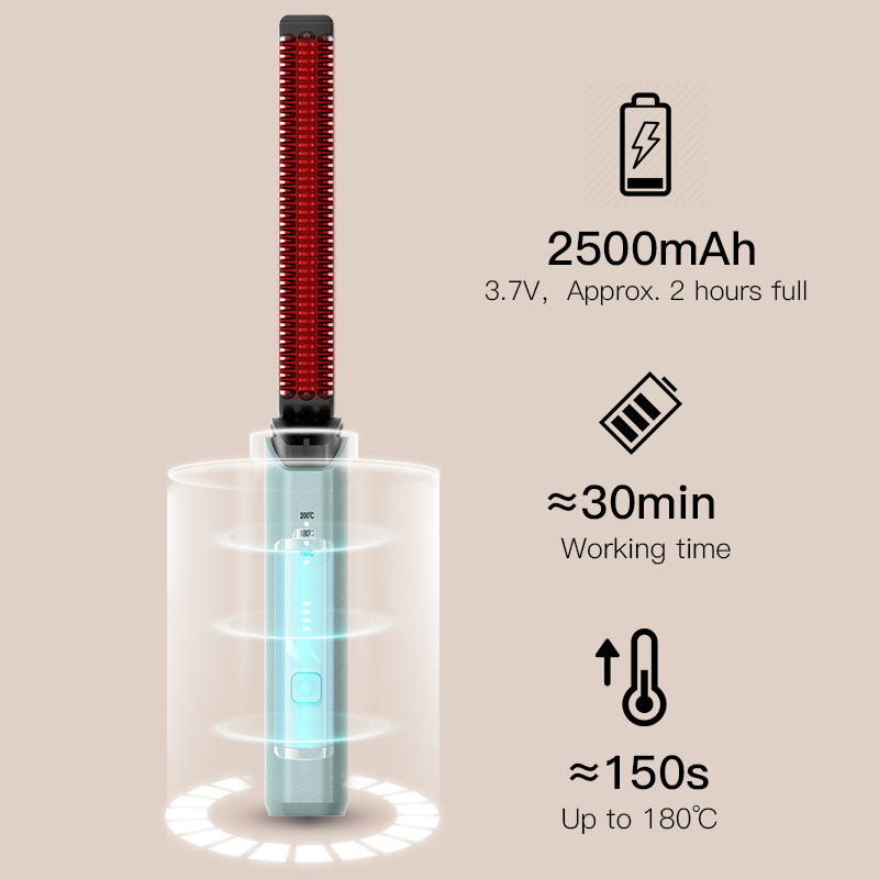 Brosse lissante électrique portable rechargeable Type-C avec réglage de température en céramique, affichage LED sans fil, haute qualité