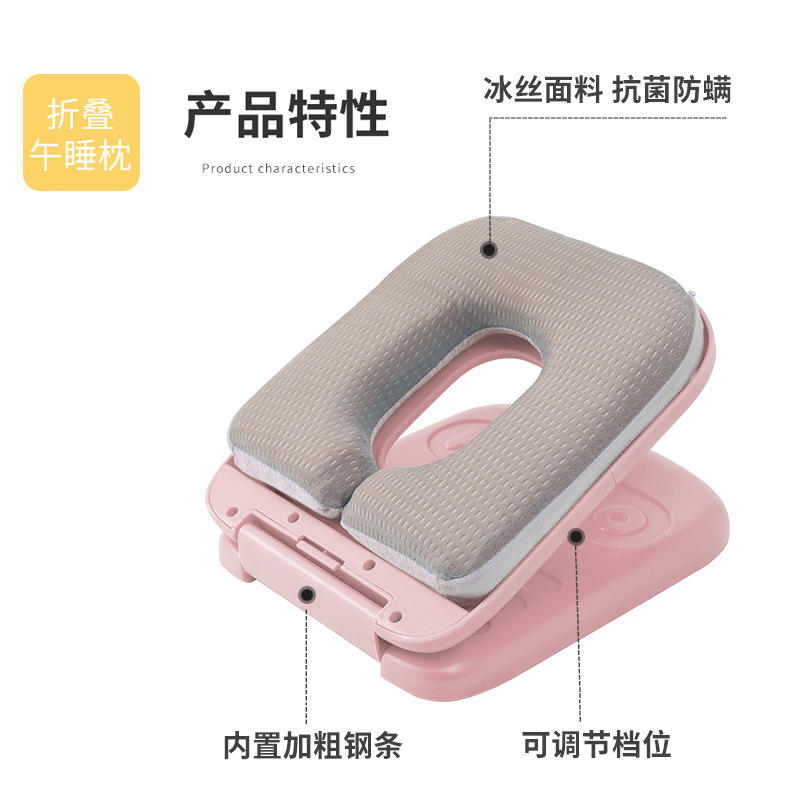 Portable U Shape Nap Pillow For Students Ice Silk Memory Foam Multifunctional Massage Pillow Mint Green Pink Space Gray