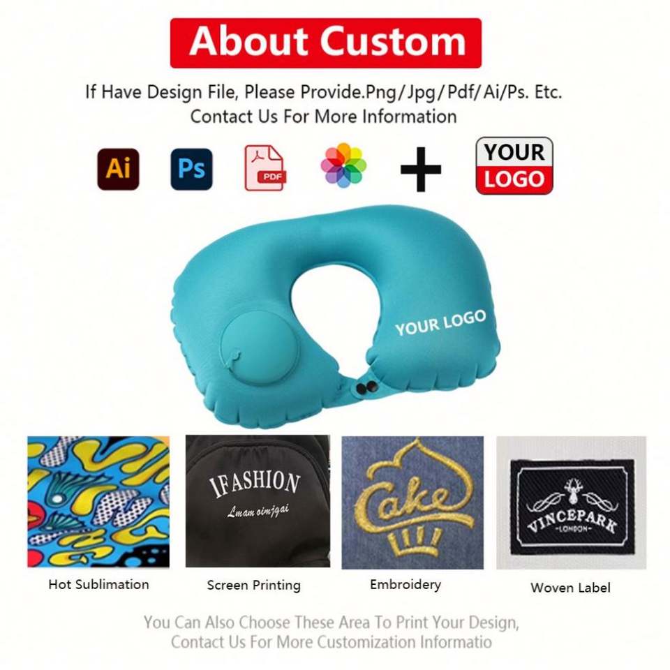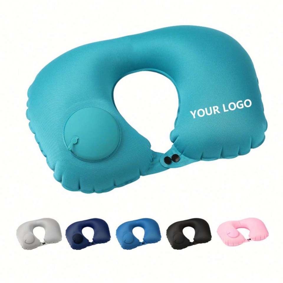 Oreiller de voyage gonflable en forme de U portable, doux et confortable, rempli d'air, pour le train, l'avion, l'extérieur, avec logo personnalisé