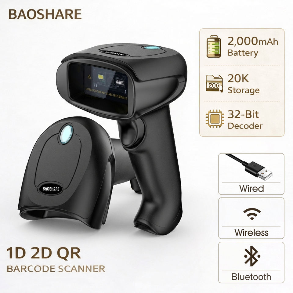 Scanner portable USB de codes QR et codes-barres avec connexion sans fil 2.4G pour source lumineuse CMOS, numérisation en 1 seconde, compatible multi-OS, en stock