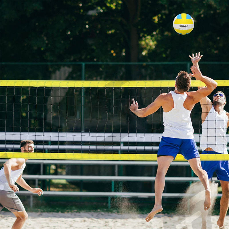 Ensemble de filet de volley-ball portable pour l'extérieur, la cour, la plage avec système anti-affaissement, poteaux réglables en hauteur, ballon de volley-ball avec pompe