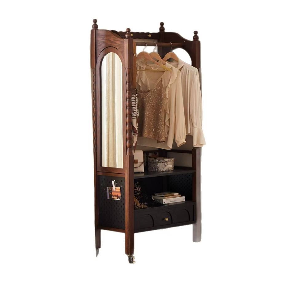 Armoire portable en bois massif, support à vêtements sur pied, style vintage, étagère ouverte pour chambre à coucher, organisateur de rangement de vêtements