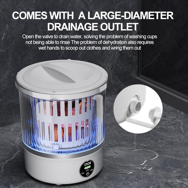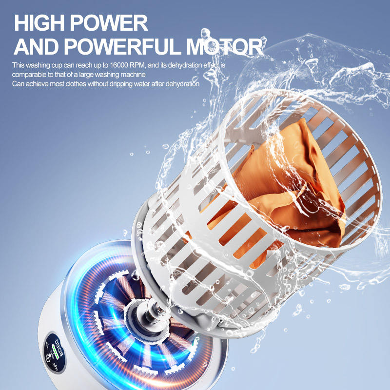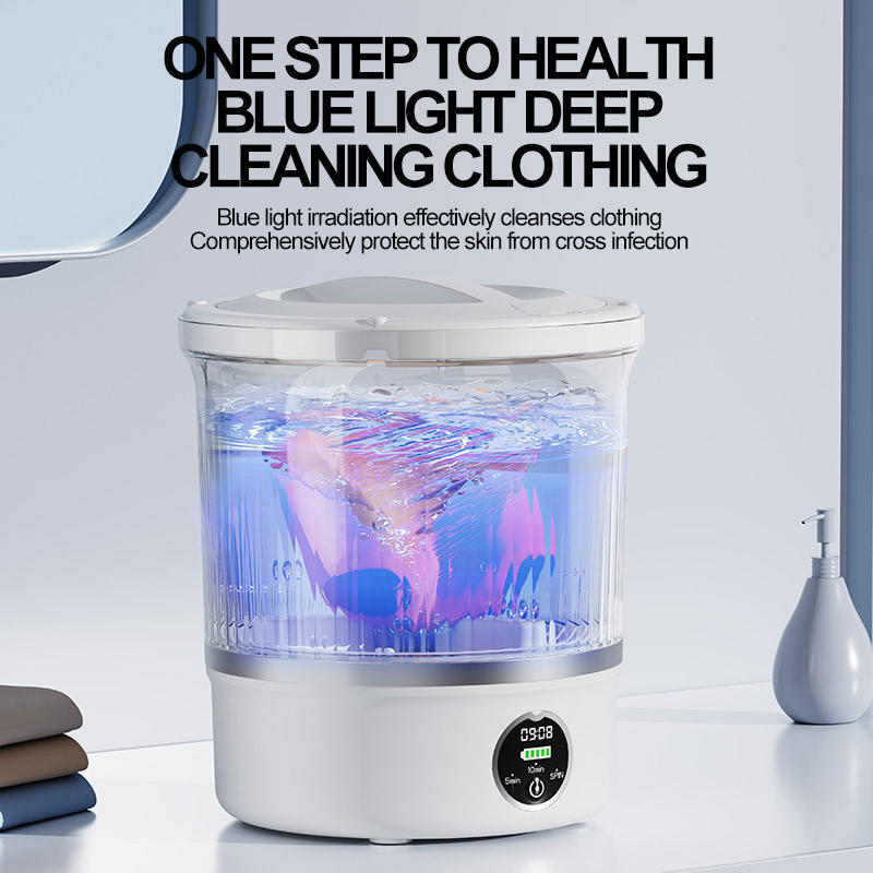Lave-linge portable sans fil, mini machine à laver 6000 mAh avec stérilisation par lumière bleue, lavage et essorage pour sous-vêtements