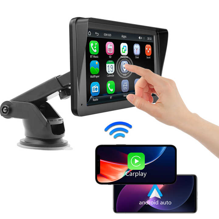 Autoradio portable sans fil 7 pouces HD Carplay écran tactile lecteur MP5 avec Apple CarPlay et Android Auto Mirror Link Fm TF USB